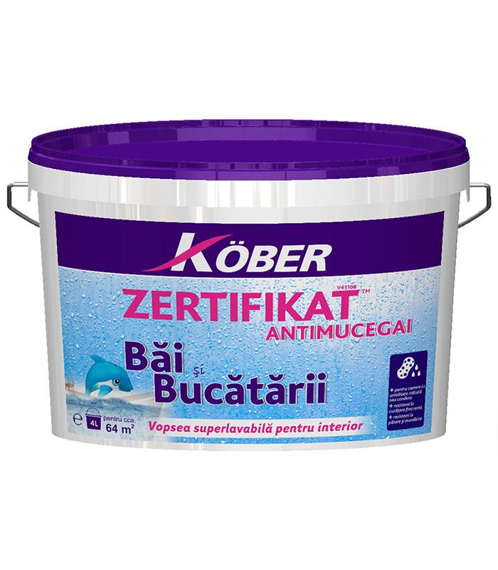 Zertifikat băi & bucătării ANTIMUCEGAI este o vopsea superlavabilă, superalbă, utilizată pentru zugrăvirea suprafeţelor interioare ce pot dezvolta mucegai sau igrasie (băi, bucătării etc).